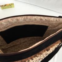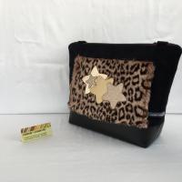 Ce sac élégant s'accordera parfaitement avec vos tenues. Il se porte à l'épaule ou au bras avec deux anses noires en coton tressé de 66 cm. Il est confectionné sur le devant en fourrure beige brin motif léopard avec des ètoiles dorées. Le bas du sac est en skaï noir. L'arrière du sac en suédine noire comporte une poche fermée par une fermeture brune de 24 cm pour y ranger vos clés. L'intérieur est doublé en coton brun beige avec une poche de 14 cm x 18 cm. Il se ferme avec une fermeture brune de 30 cm. La structure du sac est renforcée pour un meilleur maintien.