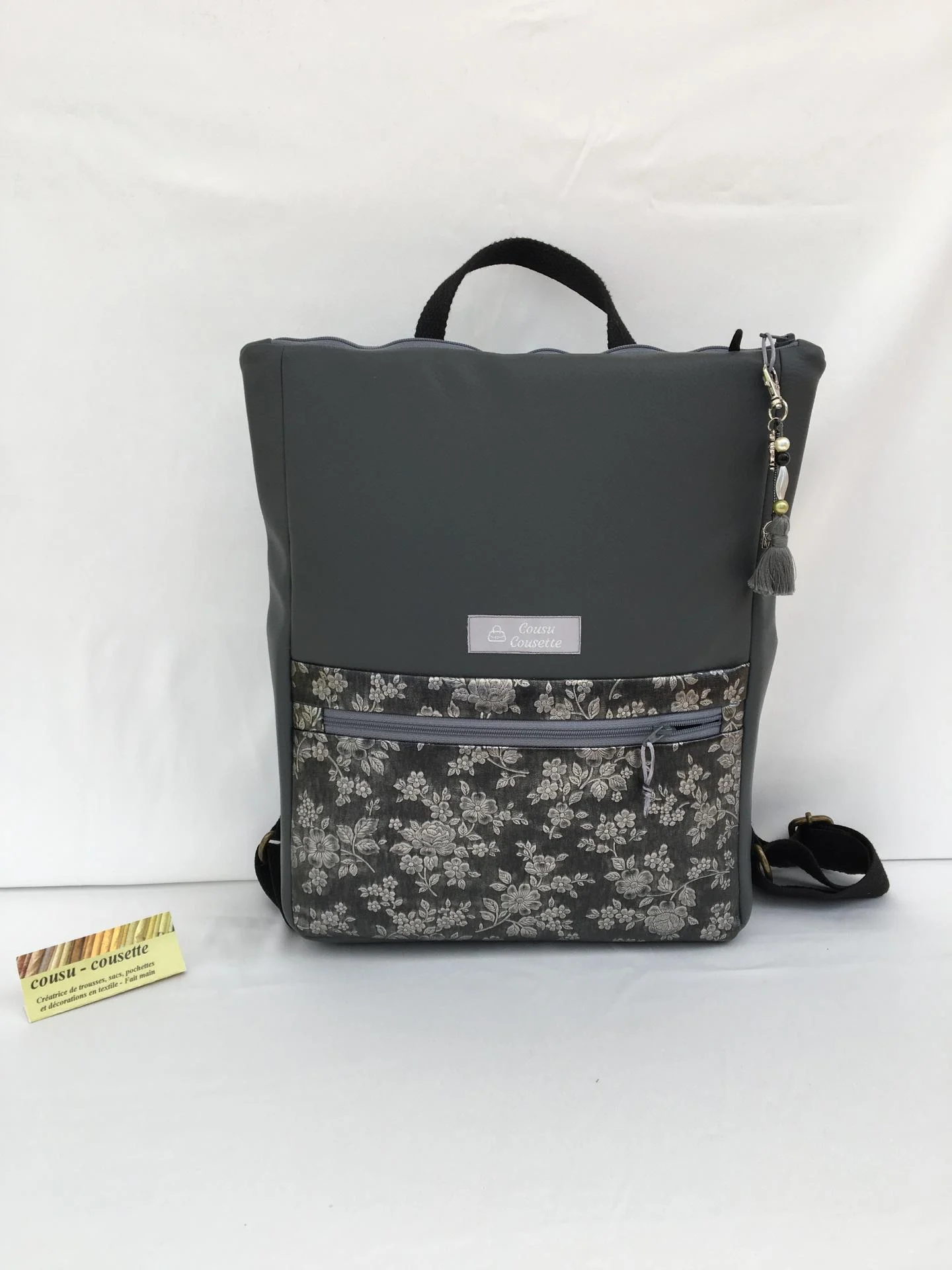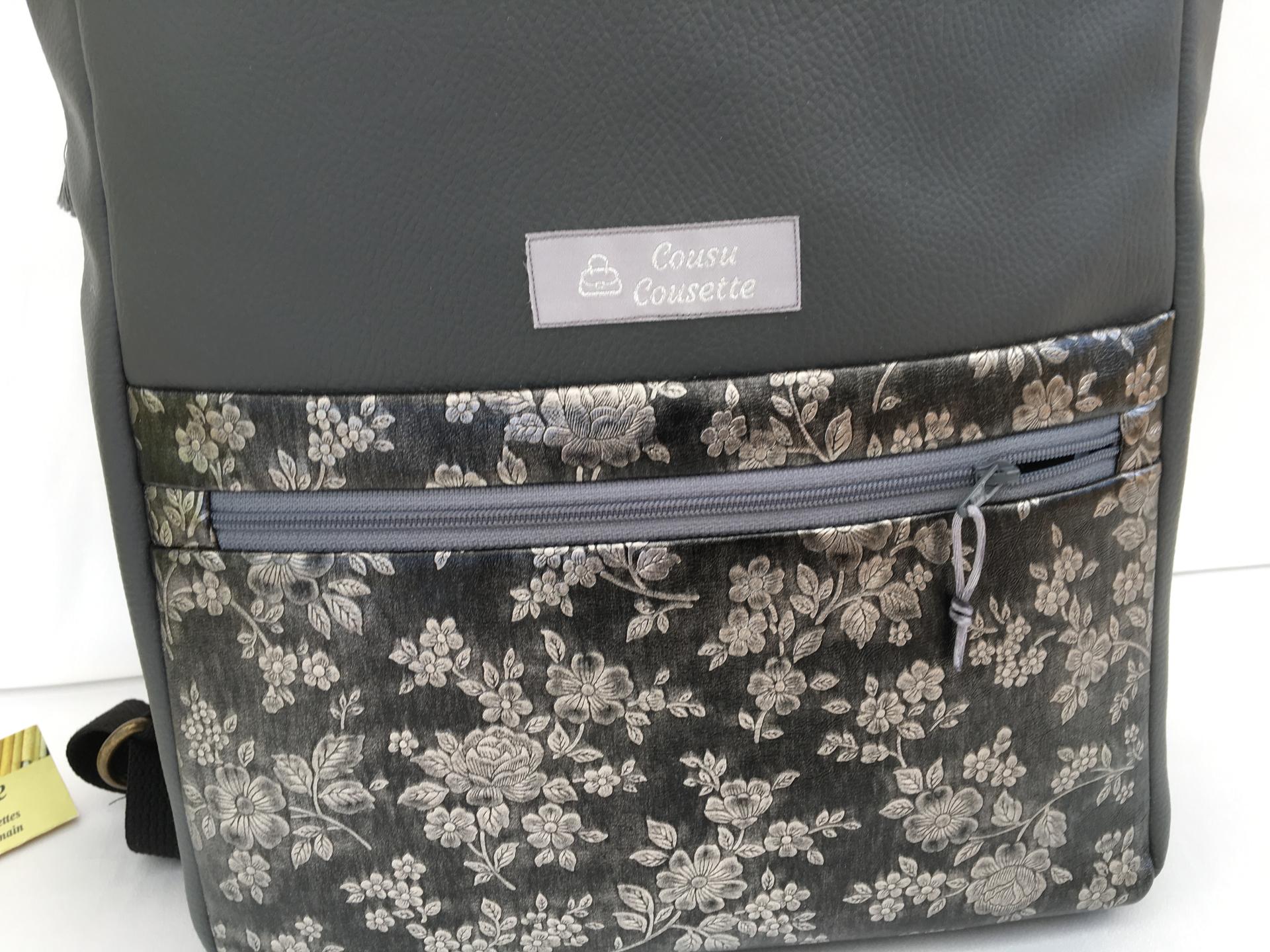 Sac à dos skaï / gris / fleurs réf : SAD 01 prix : 74 euros
